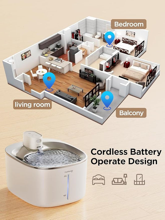 Wireless Cat Water Fountain with Sensor, 4000mAh Battery Operated, FEELNEEDY 4L/135 fl oz Pet Water Fountain for Cats and Dogs, Ultra Quiet Cat Drinking Fountain with 2 Filters
