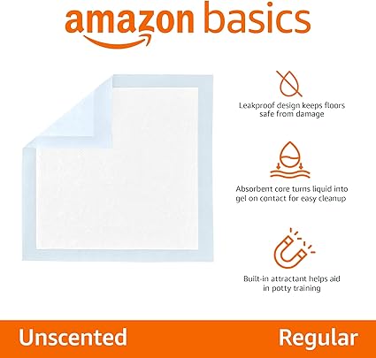 Basics Dog and Puppy Pee Pads, 5-Layer Leak-Proof Super Absorbent
