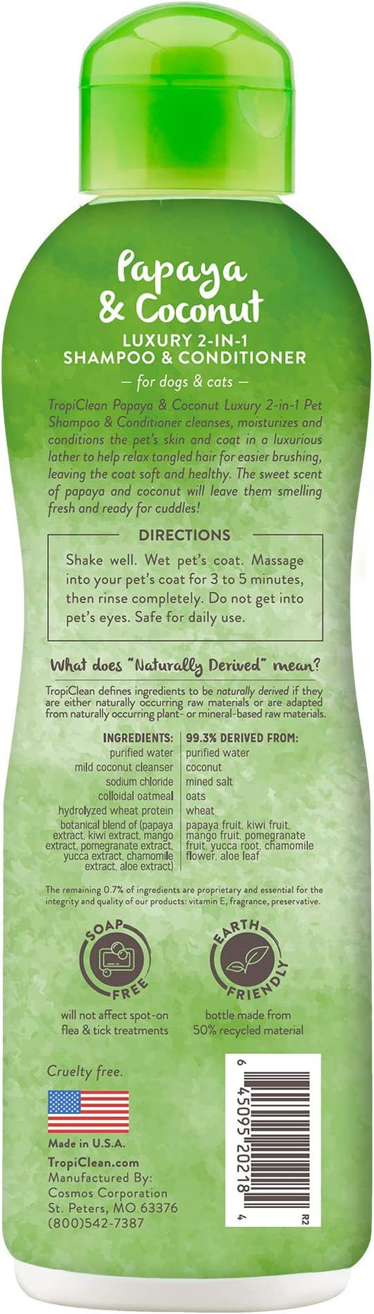 TropiClean 2-in-1 Dog Shampoo and Conditioner, Moisturizing Dog Detangler, Puppy Safe, Made in the USA, Papaya Scent, Cat & Kitten Safe,